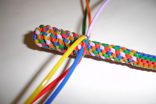 6/ On recommence en tenant toujours le scoubidou à l'envers.Il faut faire attention: en faisant les boucles