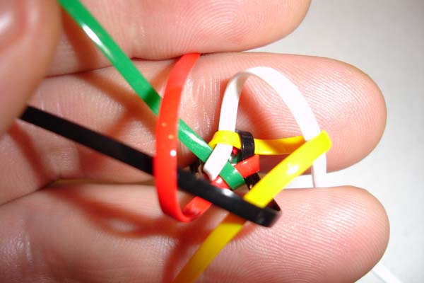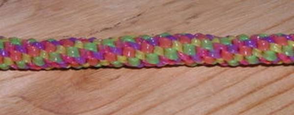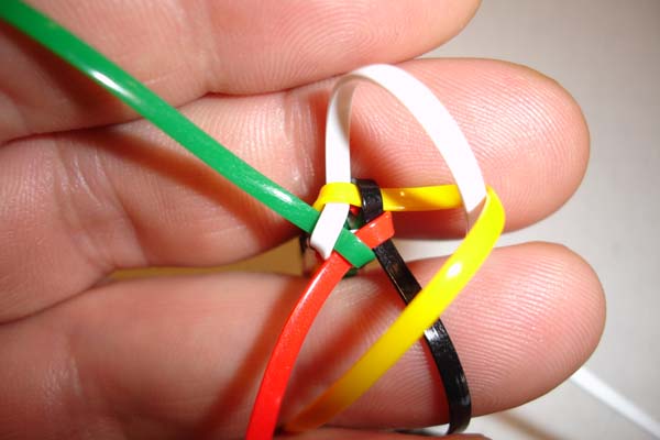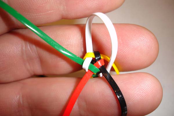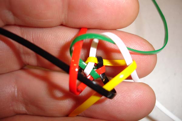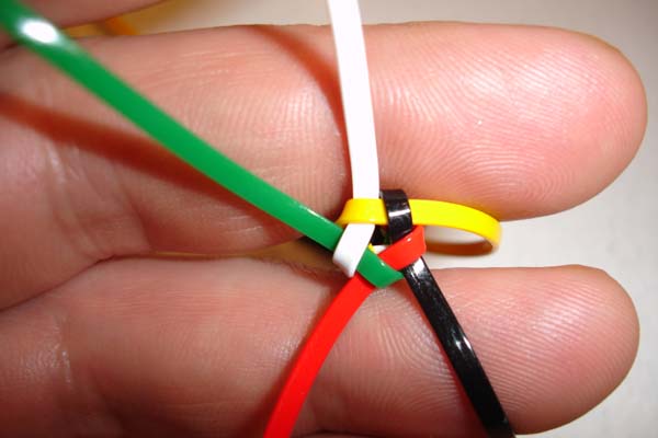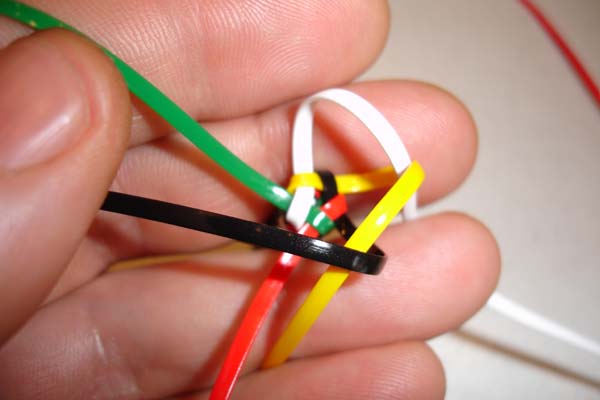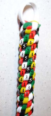 Pour réaliser un 5 brins rond, il faut replier le fil sur la couleur suivante.